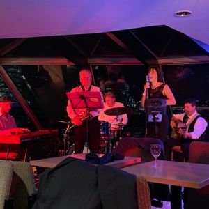 窓際の席ではなかったので、ほとんど景色を見ることはありませんでした。母と娘と3人で参加したので、ダンスのないプランが良かったのでこのクルーズにしました。ジャズをBGMに…とはいかず、かなり大音量でしたが、そこはプロの演奏だったので楽しめました。どの料理も大変美味しく量も十分過ぎるほどで、食べ切れず残すのが申し訳なかったです。