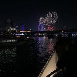 花火を観るための場所取り(船の位置)は運不運もあるので諦めが必要だと思いますが、ツアー全体の内容がなさすぎる。なぜ2時間45分も前に出発する必要があるのか全く理解できない。ただ川を登ったり下ったり、夜景を楽しめと言うにしても全く説明すらなく、自分が今どこにいるのかGoogle Mapを見なければわからない状況。ウエルカムドリンクとニューイヤードリンクが付くけど案内もなく引換券を持って自分でカウンターに取りに行かなければならない。案内がないので気付かずに飲めない人もいる始末。わざわざ前日にツアー時間は4時間との確認メールが来るのに実際には3時間で終了。受付時もグチャグチャな状態。イギリスでいくつも有料のイベントに参加したことがあるが、この料金レベルで最低の受付。少し観光客の足元を見過ぎでは?