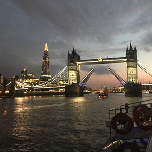 時折、雷雨に見舞われるなどロンドン初日は何だかんだバタバタしていました。そんな私達を迎えてくれたクルーの方々の温かい笑顔で心のユトリを取り戻せました。(感謝)食事も演奏も大満足。何よりも、夜のタワーブリッジは最高でした。