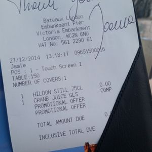 The views, the boat and service were all amazing! I highly recommend to include lunch cruise in you London sightseeing plan. Window seats are a bit on the expensive side, but totally worth it!