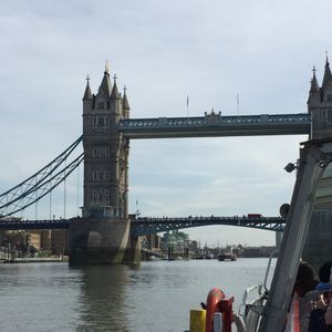 デッキには自由に出る事ができます。タワーブリッジをバックに写真を撮ろうと待ち構えていると、ちょうど橋が開く時間だったようで、一味違うタワーブリッジの写真が撮れました☆