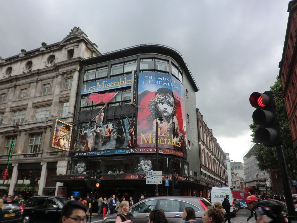 当初は正規のチケットを買おうと思っていたのですが、良い席だと値段が倍近くする上(家族総出なので結構な出費になるなと…)、初海外ミュージカルということもあり、様子見でとりあえずVELTRAを経由して手配してみました。正規の半分程度の値段なので、正直あまり期待せずに現地にいざ出陣。やはり週末ということもあり、ロンドンのピカデリー周辺は非常に混雑。またレミゼを上映しているクイーンズシアターの前も人・人・人!ということもあり、この時点では「何となく雰囲気だけでも楽しめればいいか!」という程度の気持ちになっておりました。そしていよいよ、VELTRAのバウチャーをチケットに交換(特に問題もなくスムーズに交換でき、とりあえず一安心(笑))。そのチケットを持っていざ席に向かうと・・なんとビックリ!ものすごく良い席!確かに前方寄りではあるけれど、レミゼを上映しているクイーンズシアター自体、非常にこじんまりしたシアターなので、前方であっても全体感が見え、演者さんの熱気も感じることができた非常に良い席でした。もちろん、演目自体も非常によく、期待していたロンドンのミュージカルの雰囲気を大いに満喫することができました!次回もレミゼの際にはVELTRAを利用したいなと思いました。