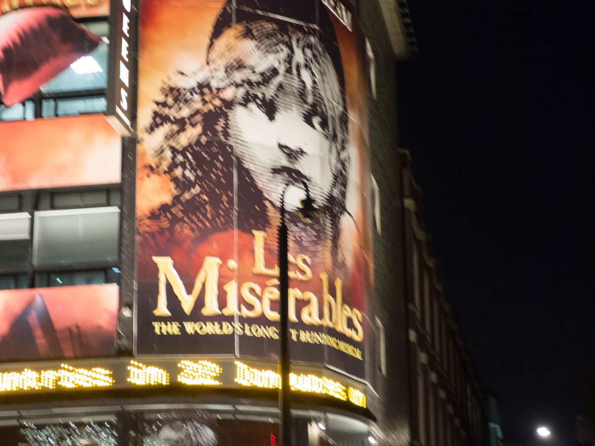 初めてのLondonで多くのことを体験しようと選んだひとつがこのミュージカルでした。劇場の場所はTrafalger Squareから5,6分で歩ける見つけやすい所にありました。(写真参照)劇場はドアを開けるとすぐチケットの窓口で狭いスペースに入場前の沢山の人で混雑していました。ゲートを入ると劇場内は思った程広くありませんでした。座席は幸運にも前から10列目ぐらいで非常に迫力のある演技を見ることができました。舞台装置のスペクトルもさることながら、ミュージカルの歌の素晴らしさに感動しました。