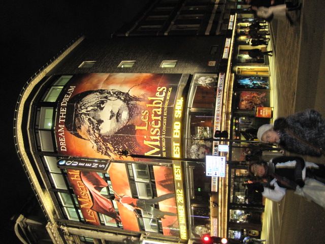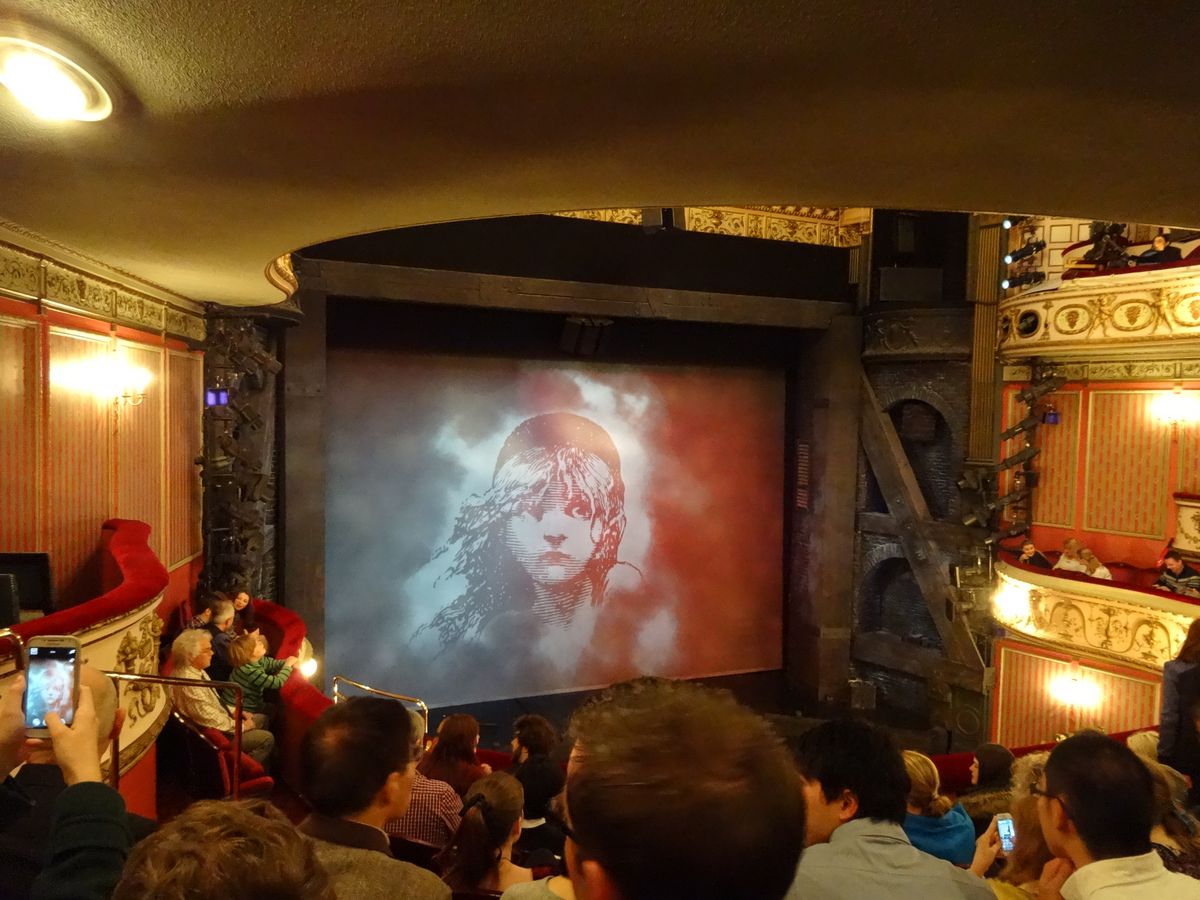 日本の帝国劇場で観てから20年も経っていたので、DVDを観て物語を再確認してから観ました。ロンドンの劇場はこじんまりしているのでSTALLS舞台まで近くやはり迫力あります。舞台装置も衣装も俳優の演技も見事で英語が聞き取りにく分からなくても楽しめました。コートやマフラーを膝に置いたのですが、この劇場は前後の座席間隔があまりにも狭くてクローク(有料)に預ければ良かったと思いました。幕間では殆どの人が立ち上がりお手洗いやアイスクリームを食べてましたが、私は疲れていたので席に着いて始まる前から食べていたら周りの方に笑われました。アイスクリームは幕間に売りに来るのです。