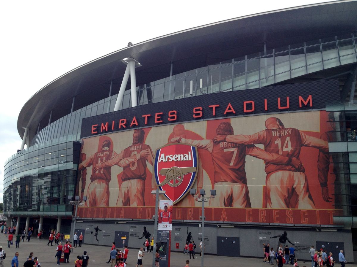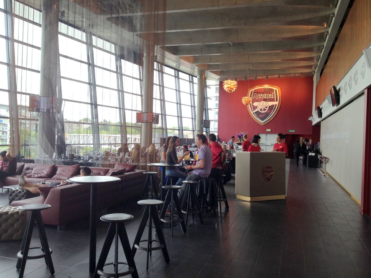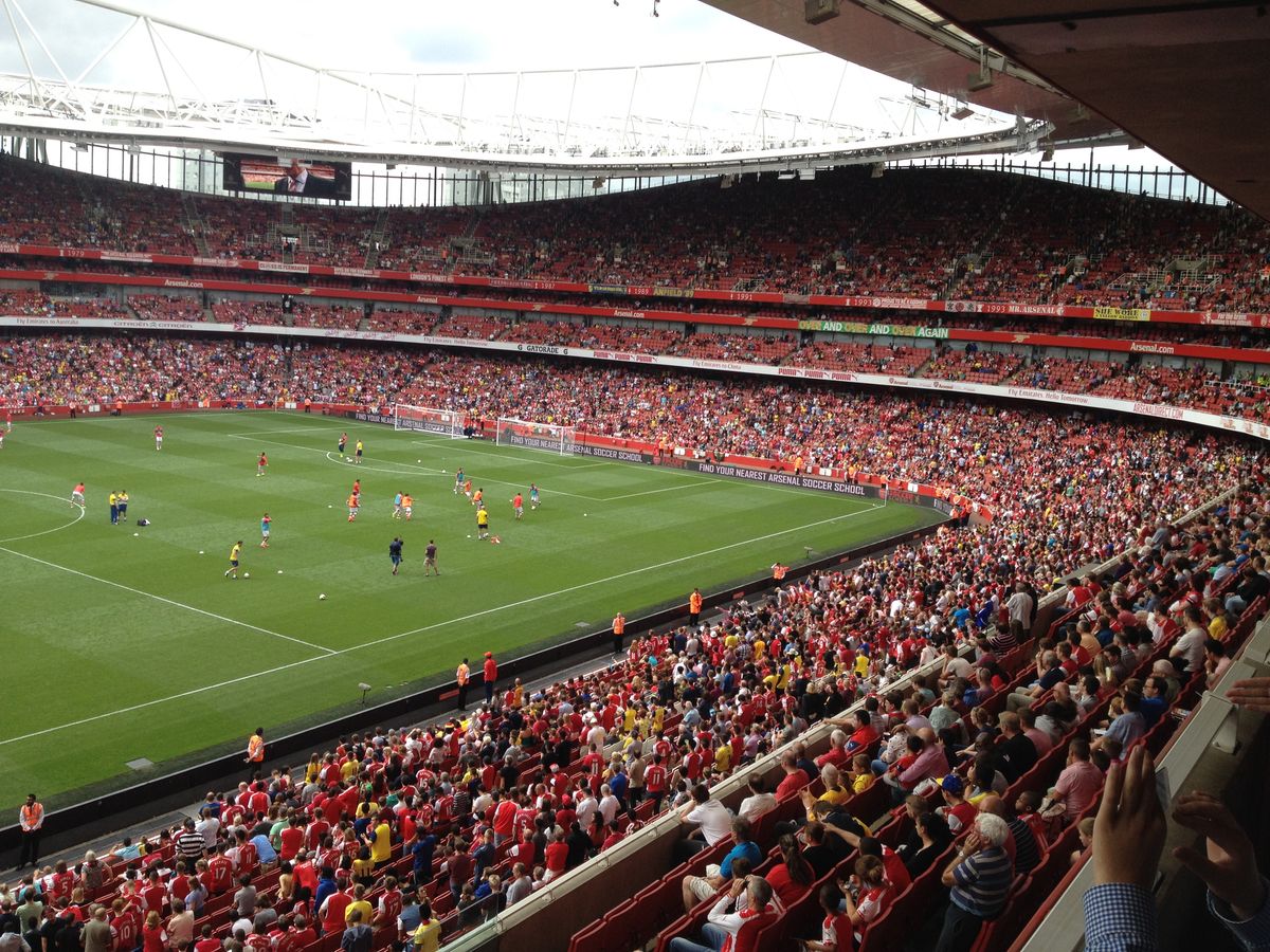 アーセナルカップを観戦。綺麗なスタジアムで、駅からも近いです。入場口はゴール裏の一般サポーターと分かれていて、ちょっとVIP気分です。席のあるクラブレベルはラウンジやフロア専用のトイレもあり、スタジアムというよりはホテルのロビーのような雰囲気でした。