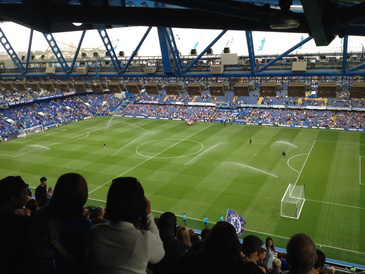 チェルシーFC サッカー観戦チケット予約手配<スタンフォード・ブリッジ・スタジアム/ロンドン発> に参加しました。チケットは会場に入り、完全な反対側(裏側)までスタジアムの脇を歩くとHOSPITALITY TICKET COLLECTION というところがあり、そこで簡単に交換できました。席はかなり上の方でしたが、あまり大きなスタジアムではないので、臨場感あふれる雰囲気を楽しむことができました。