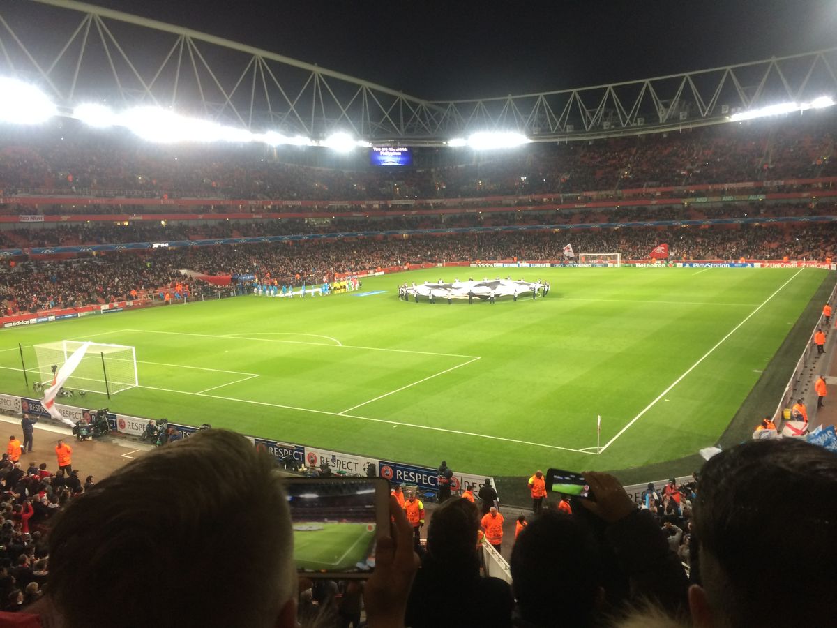 目の前でアーセナルの2ゴールが見る事が出来、スタジアムの雰囲気は最高でした。