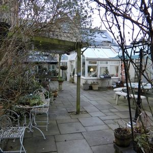 外の庭やカフェを楽しむにはすこし時間が足りないですね。