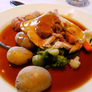 ランチに寄ったSWAN HOTELは建物もお庭もキレイで雰囲気ありましたが、クリスマスシーズンだったので、マス(魚)ではなく、ターキーが出てきました。 肉はまずまずでしたが、クリスマス特製ライスプディングに私は辟易。困っていたら隣の男性がトントンとテーブルをたたいてくれて、目配せで(みんな残してるから大丈夫だよ)と教えてくださいました。