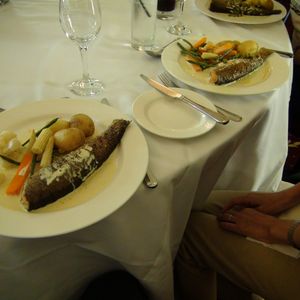 お昼にスワンホテルでの昼食がついてますが、すぐ近くで養殖してる鱒料理か、ヴェジタリアンメニューのトマトパスタでした。鱒料理はあっさりして美味しかったでっす。同じテーブルのオーストリア人、カナダ人、シンガポール人と仲良くなれました。