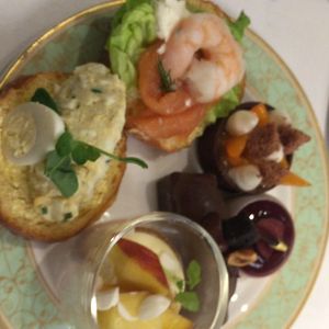 他にも、オープンサンドが2種類あって、こちらも給仕の方が各テーブルをまわって勧めてくれます。