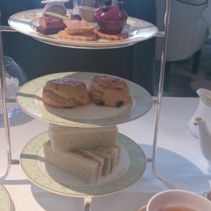 予約時間に遅れてしまいましたが、店員さんは笑顔で席に案内して下さいました。席についてからも、まずフルーツカクテル?を出していただき、こちらの様子を伺いながらタイミングよく紅茶やケーキ、サンドイッチ、スコーン等を運んで下さいました。どれもすごく美味しく、店員さんもすごく親切で、さすが5つ星ホテルだなぁと感じました。量は、見た目はそんなに多く見えませんでしたが、一通り食べると満腹になりました。優雅で素敵な時間を過ごすことができました。こちらを予約して本当に良かったです。