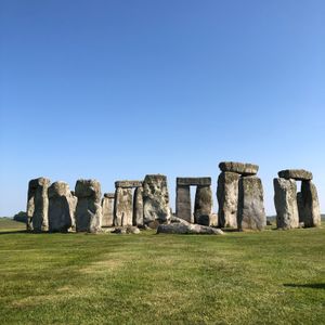 ガイドさんは、ストーンヘンジに着くまでは歴史についてお話ししてくださいました。駐車場到着後、お手洗いの時間があり、その後現地の専門ガイドさんと合流しました。シャトルバスに乗り換え、ストーンヘンジがあるエリアに移動しました。50人の参加者がいましたが、中に一度に入れるのはたしか30人までとのことで、まずは全員が中に誰も入っていない写真を十分に撮り終えてから、参加者の半分が中に入りました。大体25分くらい中に入れていただいたので、十分見れました。専門ガイドさんは写真集を手に、夏至や冬至の太陽が沈む方向や、昔の観光の様子、いかに自然が守られず今の厳格な観光ルールが出来上がったか、石にどんな模様があるかなどを説明してくださっていました。説明は、聞いても聞かずに個人で歩き回っても大丈夫でした。時間になったらもう片方のグループと交代し、最初に入っていたグループはストーンヘンジの周りを歩いたり、先に帰りのシャトルバスに戻ったりしていました。ストーンヘンジには入り口付近にお土産屋さんやお手洗い(2箇所)があり、シャトルバスで入口に戻った後、利用するのに十分な時間がありました。