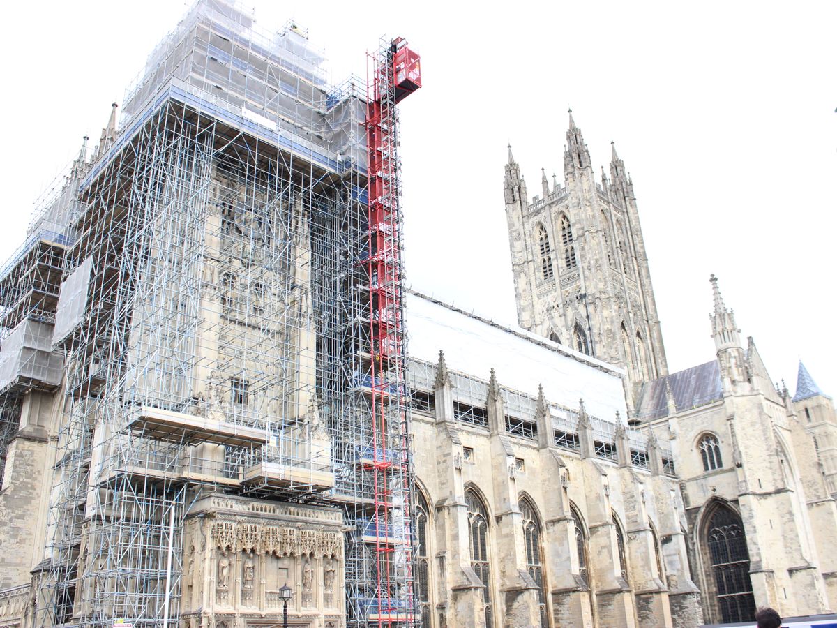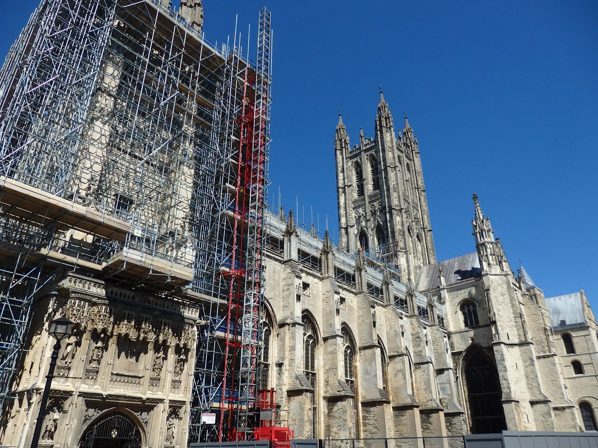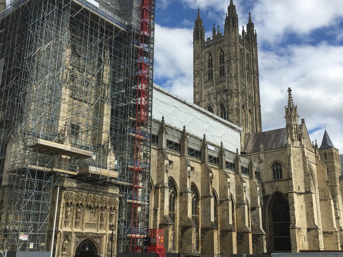 イギリスでは良くある事だと思いますが、カンタベリー大聖堂は大規模な保存作業を行っており、外側と内部の一部天井は足場に覆われていました。