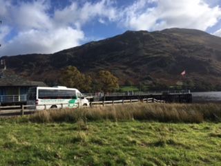 集合場所、時間帯が同じツアーが複数あるのでツアー名を伝え案内されたミニバスに乗車する。運転手さんがガイドを行うが、説明がナチュラルなスピードに近いのか早口の英語だったので聞き取れない部分が多々あった。多くのスポットをまわるため車窓観光となる所もあり、説明が聞き取れないのが惜しかった。10湖巡りとはいえドライブコースのほとんどは丘陵地帯で羊の放牧された丘を眺められ、途中降りて写真撮影ができたものの5-10分程度なのでもう少し余裕があると良かったと思う。湖クルージングは1時間だったので景色は堪能できたが途中から寒くなり30分で十分だと思った。バターミア滞在時間がもう少し長いと良かったなと思ったのでまたいつか個人旅行で訪ねたいと思う。ミニバスにはUSBケーブル差込口があり充電できたのでありがたかった。バスに揺られて1日湖水地方の絶景を眺められ満足だった。