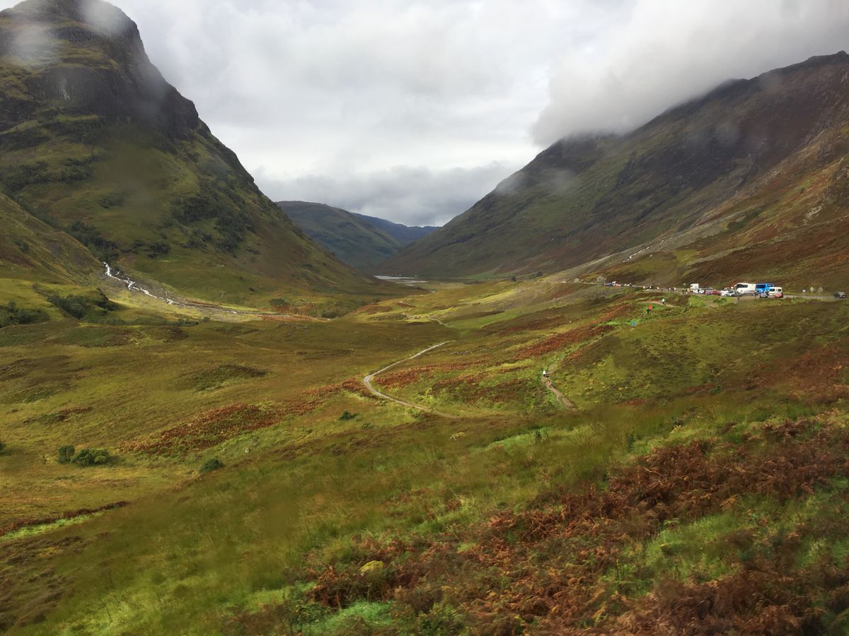 列車の旅を終えた帰路、VELTRAの案内では「グレンコーを通り」とさらっと書いてありますが、ここは素晴らしい!このツアーの目玉の一つといっていい光景が広がります。グレンコー渓谷、その先のムーアの風景は、日本では絶対に見られない絶景と言っていいと思います。