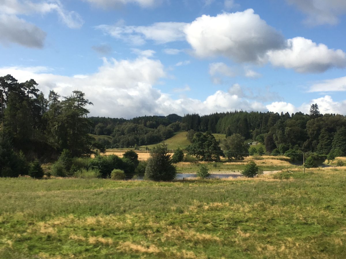 車内からのハイランドの景色は雄大でした。ただ結構似た景色は続くかなと。走りながらの写真撮影は難しいですが、ビデオを撮りながら写真を撮るようにするとわりとうまく撮れる気がします。