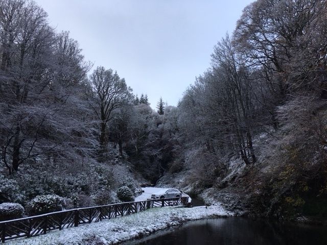 スコットランドに寒波が来襲し午前中は何と少し雪が降りましたが、ツアーの小型バス(定員15人ぐらい)はもちろんスノータイヤ装着だったので問題なしでした。