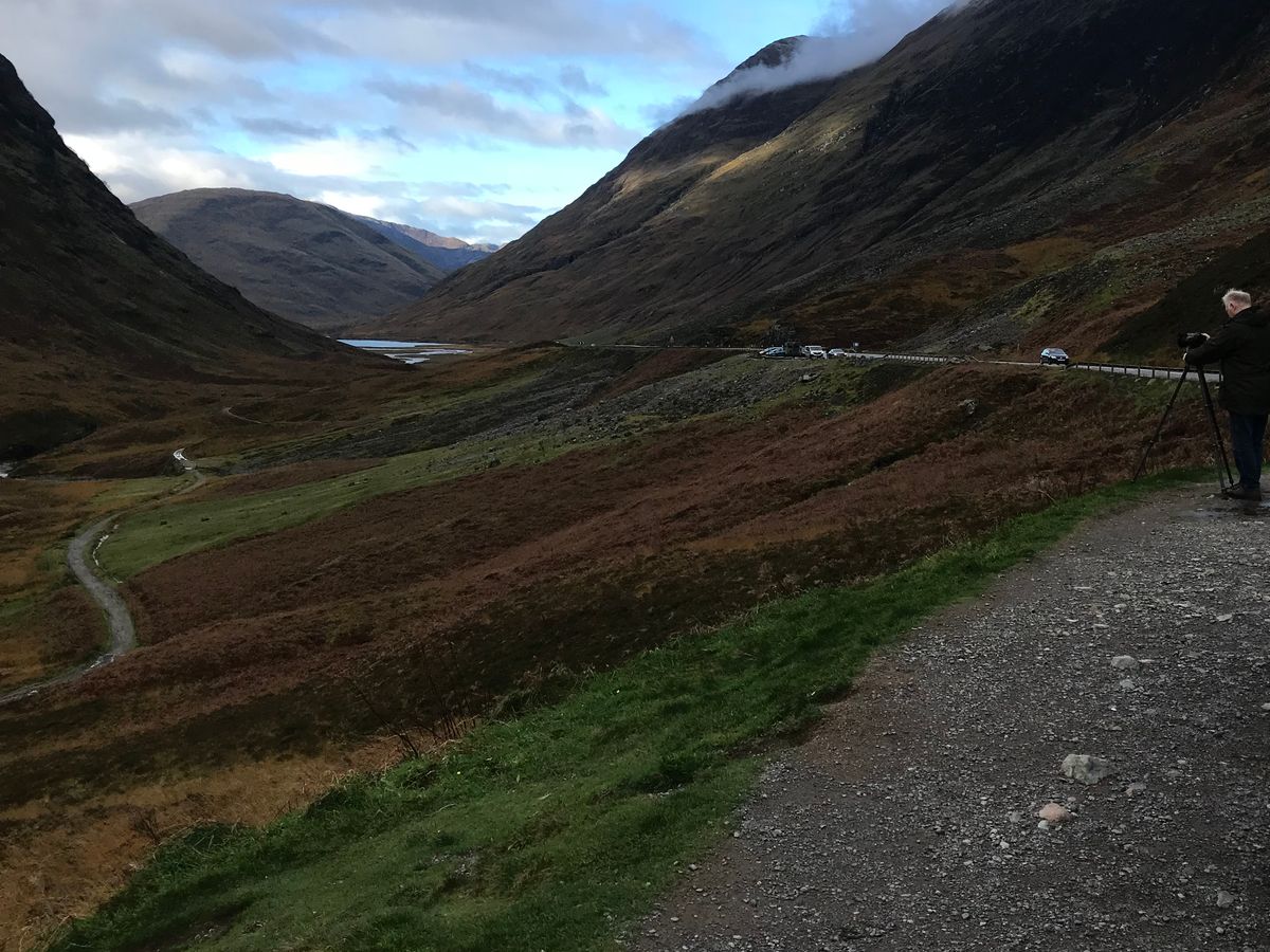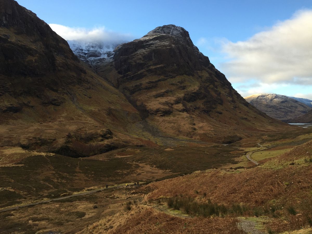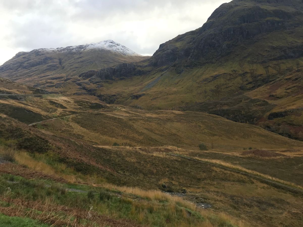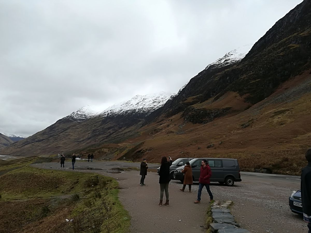 前日、高い山の上に雪が降ったようで景色最高でした。007のグレンコーは、これぞハイランドという景色でした。できることなら、もう少し時間をとって、歩いてみたかったです。