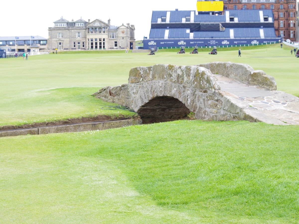 エジンバラを小雨模様の中出発、晴れあがることはなかったが、曇り空になりOLDCOURSEの1番、18番のFAIRWAY散歩し、帰国後のTV観賞の為、GREENも目に焼き付けました。又あのSWILCAN BRIDGEにも立ち、少しPLAYER気分を味わった。THE OPENの約1ヶ月前でもあり スタンド建設中でいよいよ始まるのかと思った。GOLF博物館が休館中で少し残念でもあった。訪問時は6月中旬で、一日に四季があると聞いてはいたが、真夏以外の季節は経験できた。ダウンジャケットが必要と思うほど寒かったのもいい経験でした。
