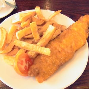 昼は皆で食べました!フィッシュ&チップスかミート?のふたつから選べました。