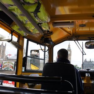 ロンドン観光とテムズ川クルーズを1時間半ほどかけて回りますが、バッキンガム宮殿などは建物の横を通るだけで広場側の真っ正面から見られず、えっ?!今の?どれがバッキンガム?という消化不良が残るかも。テムズ川クルーズは水陸両用車ということで水面ぎりぎり見ながらゆっくり進みます。映画007/スカイフォールでロケ地となったMI6本部建物の横からテムズ川に入水しロンドンアイ手前でUターンして帰ってきます。車(陸上)と船(水上)で運転手が交代し、クルーズ中はガイドは無く、陸上の間は女性ガイドが町並みを英語で説明してくれます。観光というよりちょっとしたアトラクションまたはロンドンの町並みを眺めるという気持ちで参加すると楽しめると思います。バッキンガム宮殿など観光客の多い区域では私たちの乗るダックバスが珍しいせいか観光客から写真を撮られたりしました。