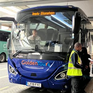 12:45集合のツアーに参加。バス停(Coach1)が全然見当たらず、色々な人に聞いて回ってようやく、出発3分前に辿り着きました。表通りにCoach6-Coach10があり、Coach1-Coach5は通りと平行の、駅の中の奥まったバスターミナルにありました。なんとか乗ることができ、2時間弱て到着したストーンヘンジは大草原の中にあり、とても気持ちのいい場所でした。ありがとうございました。