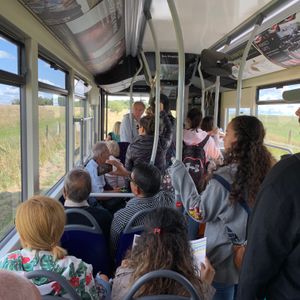 8:40くらいになると、「ストーンヘンジの方は事務所入り口まで来てー」と声がかけられます。バウチャーを見せて名前の確認をするのですが、その際、「ストーンヘンジ。私の名前は○○です。」(このとき、英語の発音に自信がない方は名前のアルファベットを丁寧に言った方がよいです。例えば、田中さんならば、「T、A、N、A~」みたいな感じで。)と伝え、チェックを受けてからバスに乗り込みました。他の集合場所から乗り込んだ方もいたようで、バスには既に多くの方が乗りこんでいました。