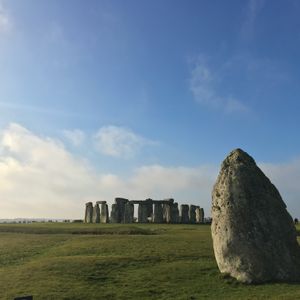 真冬のストーンヘンジは凍えるような寒さでした。灰色みがかった雲空のなか、何もない平原にそびえる巨石群には神々しさを感じました。滞在中後半は晴れ間が見え出し、また違う表情を見ることができました。2時間の滞在はあっという間に過ぎました。