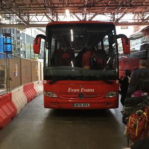 バス乗車時にチェックインし、EvanEvans社の赤色バスに乗車します。
