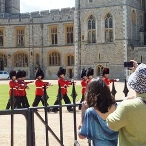 ガイドさんはイギリスの方で英語と日本語両方で説明してくれました。限られた時間内で効率よく観光できるツアーでウインザーはバッキンガム宮殿ではなかなか近くで写真を撮ったりできないですが、となりに並んで写真を撮れました。少し自由時間が短く感じますから、昼食はバスの中でサンドウィッチを買ってきて食べてその分余分に観光しました。