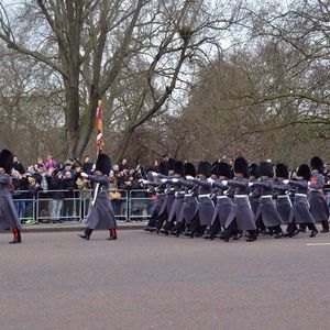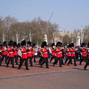 バッキンガム宮殿衛兵交代はガイドさんによる場所取りと説明がよかったです。3月15日(日)はアイルランドのお祭りの日(本来は17日だそうですが、繰り上げ<日曜>に)だそうで、市内へのバスの進入が制限され、私たちも歩くことになりましたが、ぞろぞろ歩きながらガイドさんも説明して下さり、お聞きしたいことにもこたえて下さり、私たちは相当随分歩きましたが(次の日かなり足が疲れ、大英博物館ツアーを途中辞退するほど歩きました)、それなりに面白かったです。