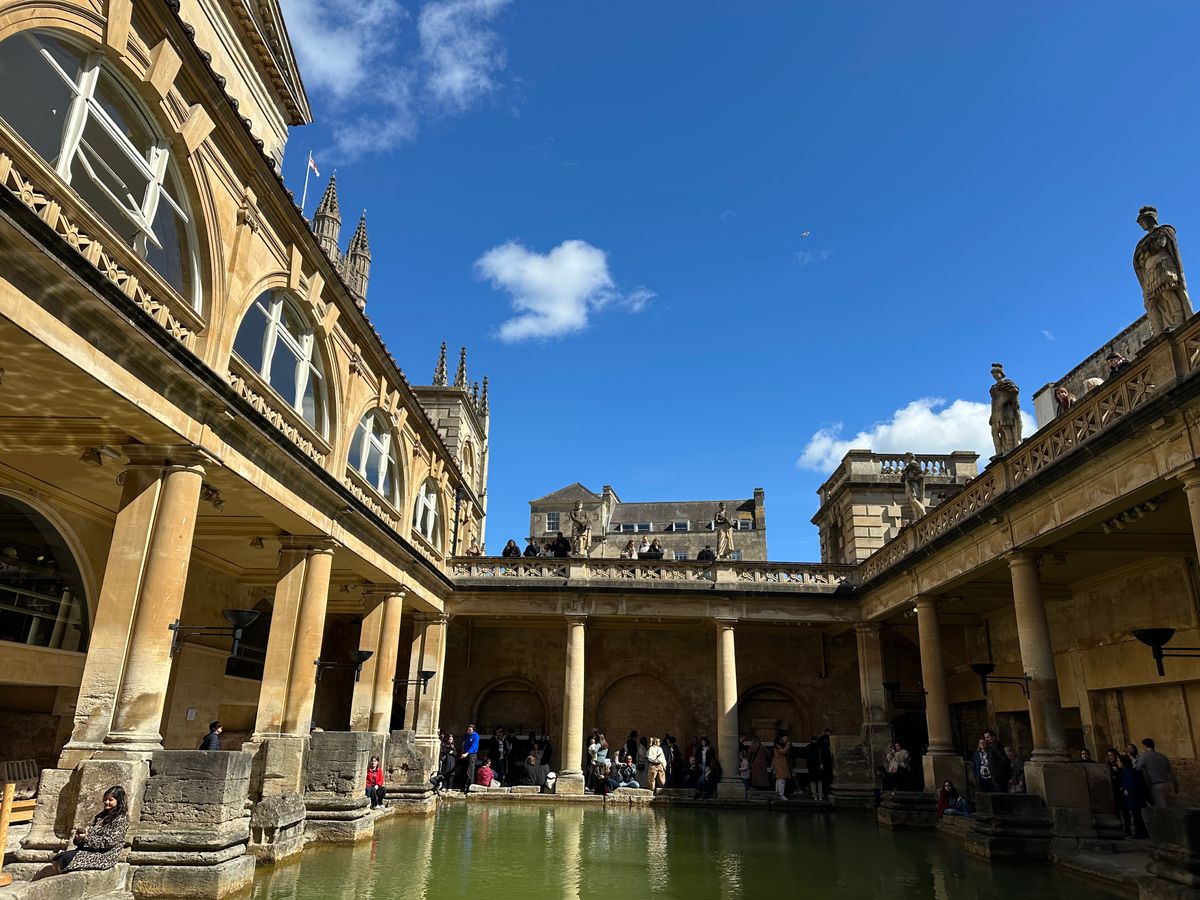 その後、最後の目的地であるバスに行きました。バスは観光客が多かったです。最初にローマ浴場に全員で向かいました。受付はガイドさんが団体で済ましてくださり、中では自由行動でした。オーディオガイドを借りたのでそれを聴きながら回りました。中は結構見るものがありました。私は他に見たいものがあったので、少し早足で25分くらいで見ました。出た後は、バスアビーを見ました。入場に列ができていましたが、アビーは思っていたよりも中は小さかったです。私はカンタベリーに住んでいてカンタベリー大聖堂の大きさに慣れていたので、大きな感動はありませんでした。私は集合時間までは街歩きをし、昼食をとったりスイーツを食べたりしました。お店はたくさんありました。観光時間は2時間弱あったと思います。ローマ浴場とバスアビーは隣接していて、他に見所がたくさんあるわけではないので、十分な観光時間でした。