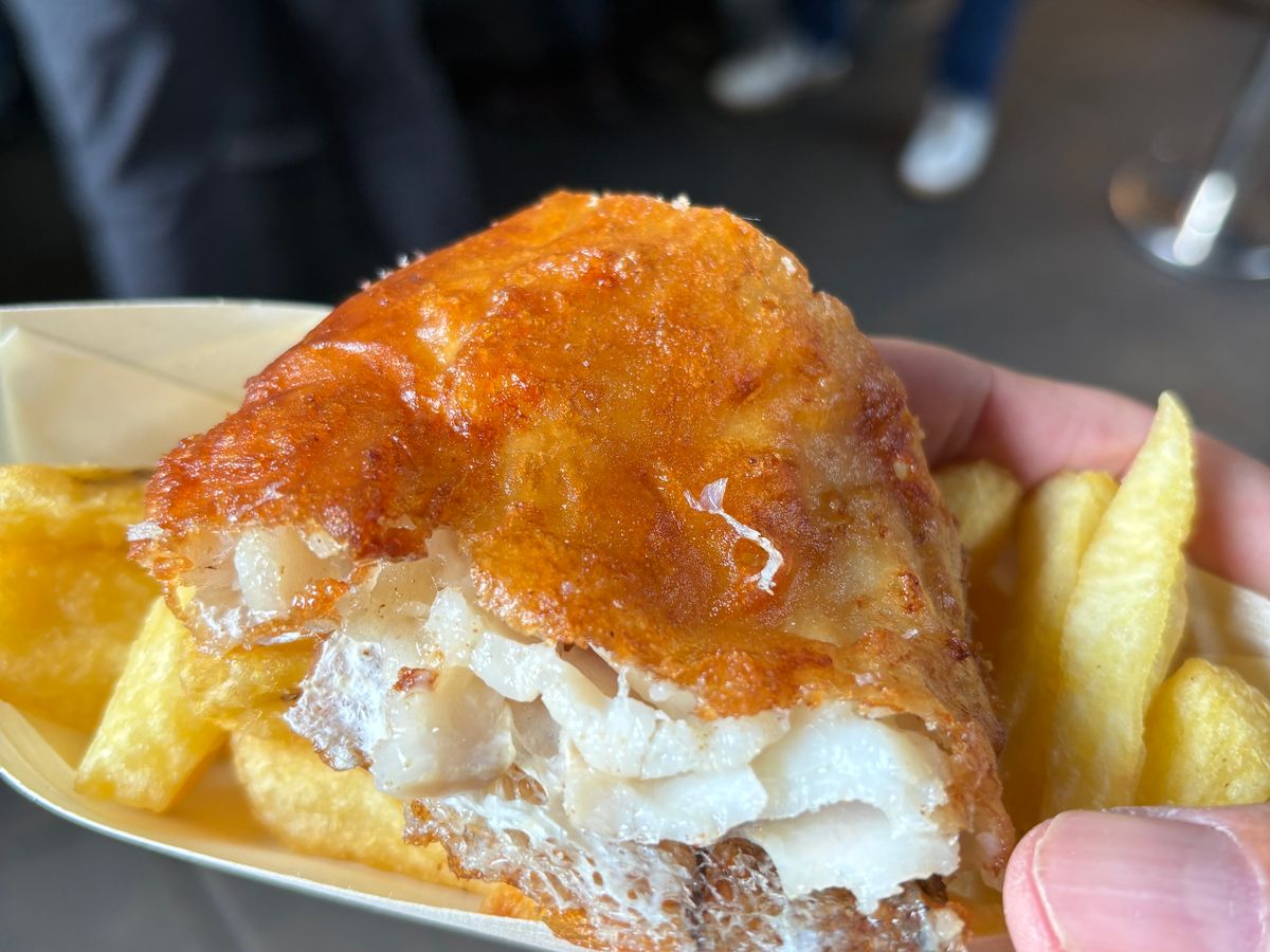アッツアツのフィッシュ&チップスやスモークサーモンを使ったサンドイッチ。そのサーモンは日本で食べるものとは違う独特な燻製法で丁寧に作られたものだった。バラマーケットにも地元産の良質な物とそうでない物があると教わった。