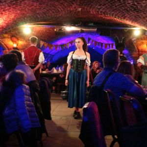 お客さんと一体となったイベントは楽しく賑やかで、衣装を着たい人はレンタルもできなかなか良い雰囲気でした。また、隣にはロシアやドイツから来た人たちが座り、国際色豊かでした。残念だったのは、料理がまずいこと。お酒は注文すればすぐに持ってきてくれました。