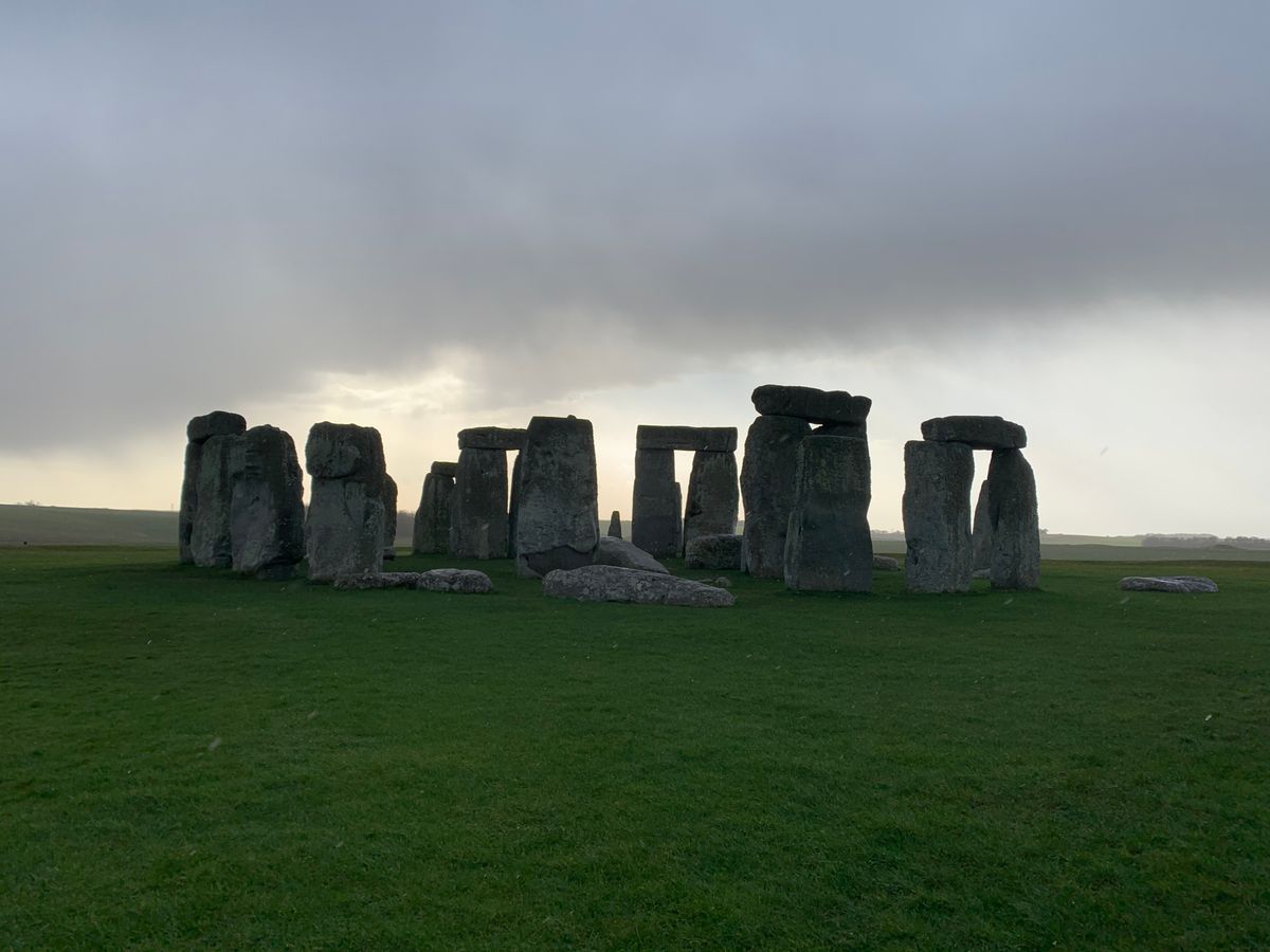 ストーンヘンジでは雹が降っており、寒さと風の強さで15分の滞在が限界だった。
