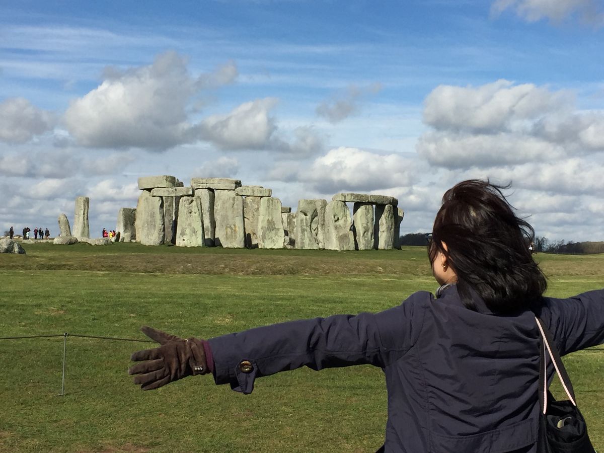 2月23日火曜日に母娘2人で参加。日本人ばかり13人と日本語アシスタント(日本人の方)で、小型バスで出発。爆睡してたら2時間くらいでストーンヘンジに到着、専用バスに乗り換えて近くまで行きました。とても良い天気で遠足の子供たちが来て写生してました。自由時間は1時間ちょっとあったので、音声ガイドを聞きながらぐるっとストーンヘンジのまわりを歩いて、ビジターセンターで買い物もできました。