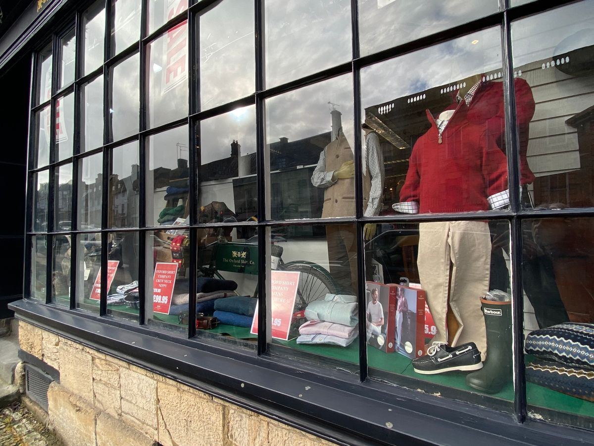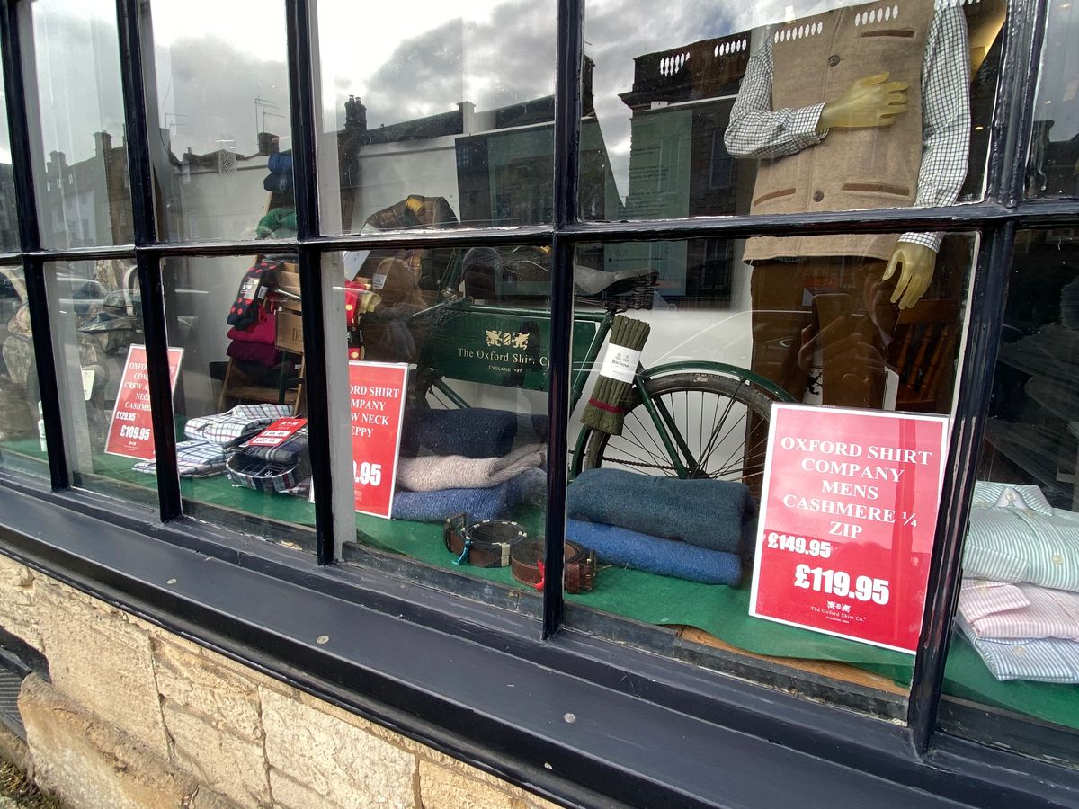 最初のバーフォードの村の洋服屋さん、The Oxford Shirts Companyでセーターを買いました。79ポンドでした。