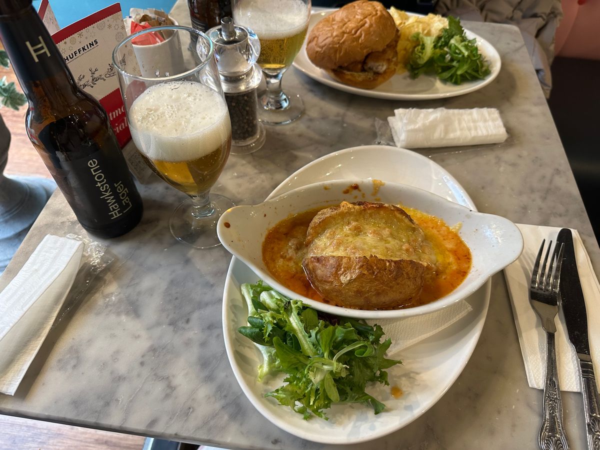 ストウ・オン・ザ・ウォルドでは、飲食店のマップをいただき、降車した場所に一番近いハフキンスで食事をしました。食べてみたかったジャケットポテトやフィッシュサンドイッチ、コッツウォルズのビールを頼み、カウンター注文で料理の提供も早く、店内も可愛くて暖かく落ち着いて食事ができました。チョコレートカンパニーでお土産にチョコレートを購入しましたが、チョコの包装がクリスマス仕様で可愛く美味しかったです。