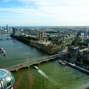 夏休みでかなり混雑しているとの情報を見て、ファーストトラックのチケットを購入しました。かなりの雨で寒かったにも関わらず、そこそこ並んでいたので、天気がよければ長蛇の列だったのではないかと思います。雨天の寒空の下で待たずに乗ることがききたので、事前購入をしておいて正解でした。晴れていても遠くを見渡せるものではないので、天気が悪くともそれなりに眺望を楽しむことは可能です。カプセル内に据え付けられたパッドで建物を確認もでき、値段なりに楽しむことができます。乗る前に写真を撮られ、1枚20ポンドもしますが、何枚かの景色を写した写真フォルダーを冊子にしたアルバムのようなものに入れてもらえるので、それなりの記念品にはなります。他にほしいものがなければ購入しても良いのではないでしょうか。