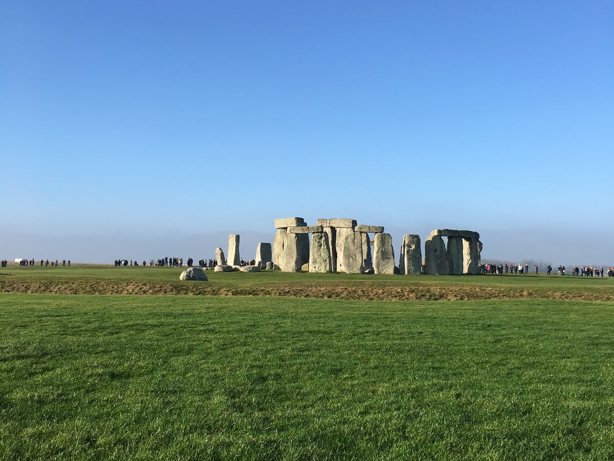 真冬のストーンヘンジは凍えるような寒さでした。灰色みがかった雲空のなか、何もない平原にそびえる巨石群には神々しさを感じました。滞在中後半は晴れ間が見え出し、また違う表情を見ることができました。2時間の滞在はあっという間に過ぎました。