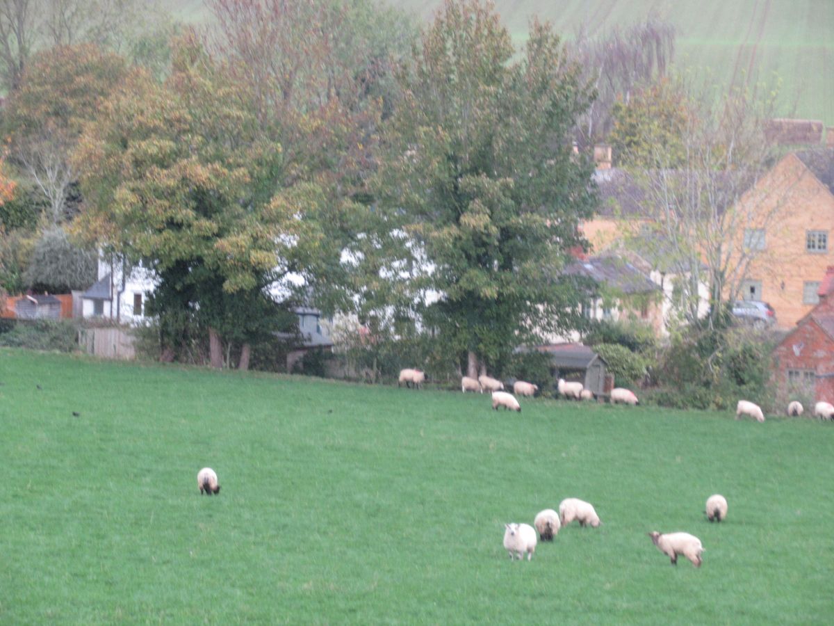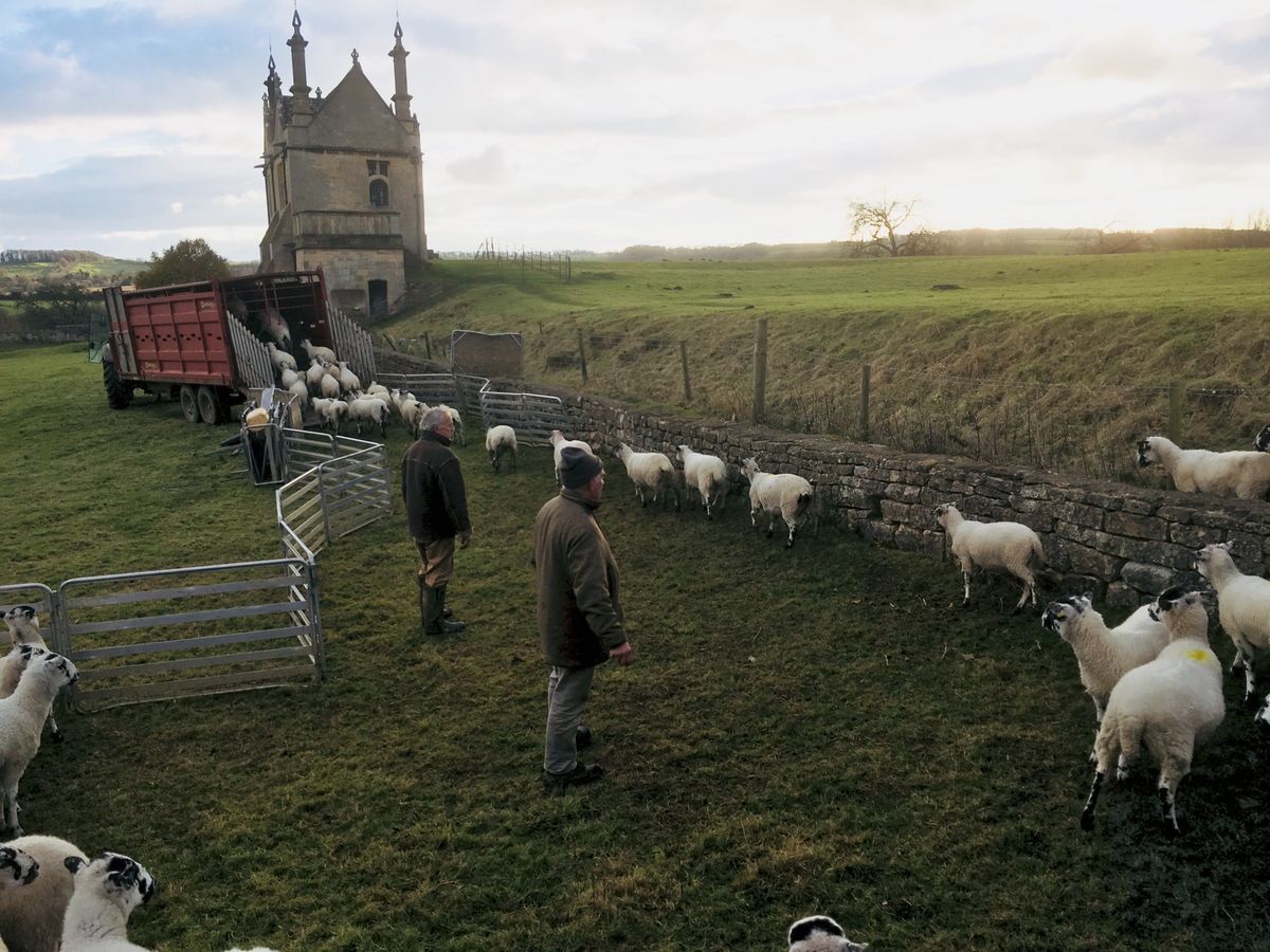 最後に訪れた「チッピングカムデン」では、小高い丘に建つ教会の前に広がる牧草地 なんとちょうど羊たちが、トラックに乗せられていくところ
