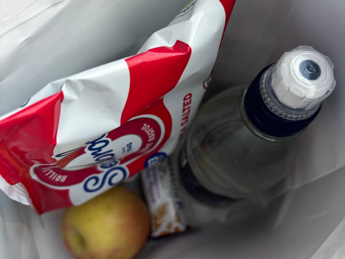 バス内に持ち込めるのは冷たい飲み物とサンドイッチみたいな冷たい食べ物のみです。