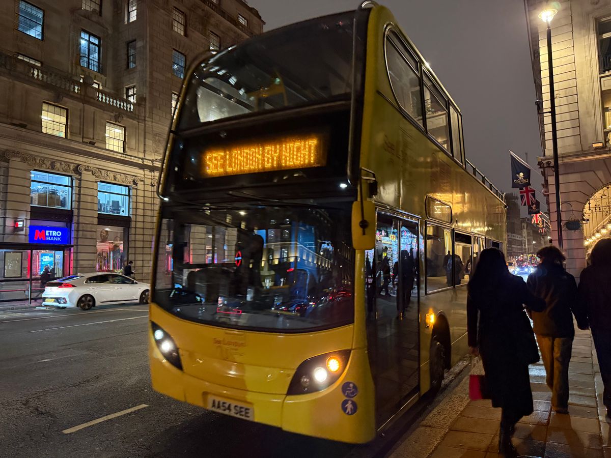 バスは二階建て、1回ではあまり景色は見れません。二階はとてもよく見えますが11月初旬でも、ものすごく寒いです。防寒着必須。