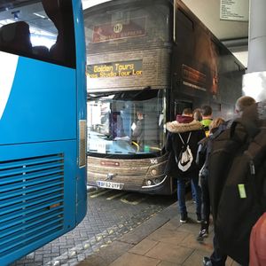 出発時に、ロンドンの集合時間に行ったら誰もいなかったのですが、10分くらいしたらいっぱい並んでいたので、バスの2F一番前の席を狙いたい場合は、集合時間前後に行って、看板のとこに並んだほうが良いですよ。