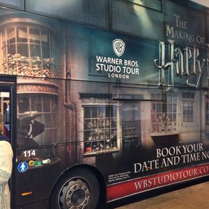 二階立てのハリーポッター仕様のバスに乗り込み、だいたい1時間ちょっとくらいの移動。途中ベイカーストリートに送迎で立寄ります。バスに乗る際封筒に入った帰りのバスのチケット、入場券と印刷したバウチャーが引換です。バウチャーは印刷しておいてください。アナウンスのビデオが到着間際に流れますが、二階のテレビ2台のうち1台はどうやら壊れていたようでした。バス内、スタジオ内共にwifiが繋がります。