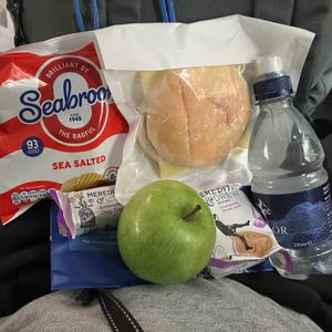 20代英語不自由な女1人でも安心です。水とサンドイッチとりんご丸かじりとお菓子がついてきました。申し込んで良かったです。