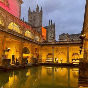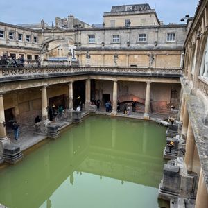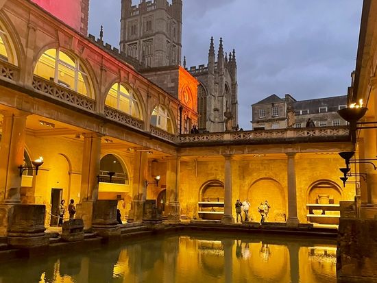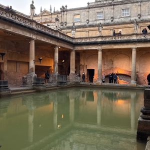 バースは予想以上ににぎやかな都市で、ローマ浴場は見応えがあります。入場料は別途で30ポンド程度と高額。繁忙期は予約推奨とのことでしたが、ツアー到着時刻が読みにくく、少し悩ましい点です。駆け足で見学する感じでした。