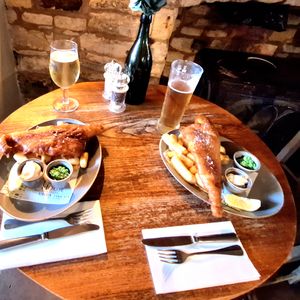 2番目の村は、ストウ・オン・ザ・ウォルド。見学前にパブでランチをいただきました。ビール&フッシュアンドチップス。ガイドさんのアドバイスどおりビネガー(酢)をタップリかけて食べたら美味しかった~!ボリューム多すぎて半分くらい残しちゃったけど。。。