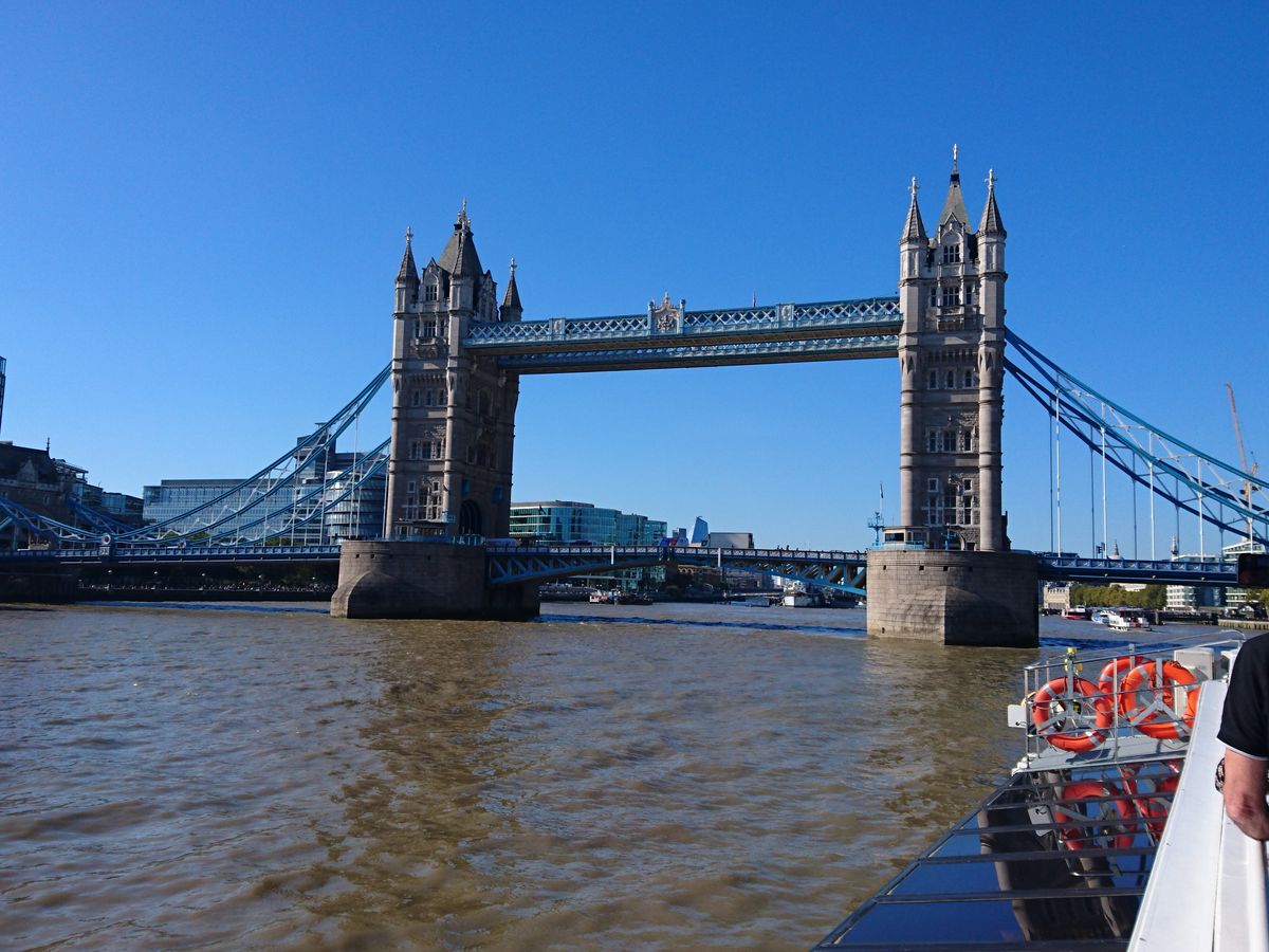 ロンドンブリッジを見ずに到着かと思いきや、船着き場を通り過ぎロンドンブリッジに行ってUターン。